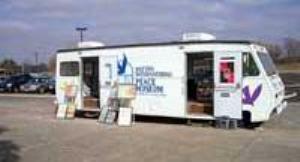 The PeaceMobile is a mobile exhibition center that houses traveling exhibits from the Museum