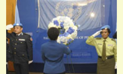 wreath-laying ceremony at UN Headquarters for fallen peacekeepers.