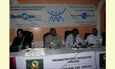 Les partisans de la paix en Mauritanie ont récemment lancé une campagne de sensibilisation en direction des jeunes afin de promouvoir la culture de la non-violence. En coopération avec l'Organisation d'intégration africaine, l'association pour un Monde sans guerres et sans violence (MSG et SV) a lancé, le dimanche 25 septembre, une caravane de sensibilisation jusqu'au 1er octobre, qui présentera des ateliers, des concerts et des séminaires pour aider à faire passer son message.