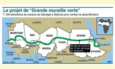 In 1977, Wangari Maathai founded in Kenya the Green Belt Movement. The project of the struggle against desertification in the Sahel region. Later on, at a meeting in Ouagadougou, 11 of the 28 countries of CEN-SAD (the Community of Sahel-Saharan States), committed themselves to an even greater and more remarkable plan: to plant a belt of vegetation 15 kilometers wide from Dakar, Senegal, to Djibouti, by way of Mauritania, Mali, Burkina Faso, Niger, Nigeria, Chad, Sudan, Eritrea and Ethiopia, millions of hectares over a distance of 7,000 kilometers!
