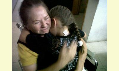 finalmente pudo salir del albergue y abrazar a su abuela. La abuela,