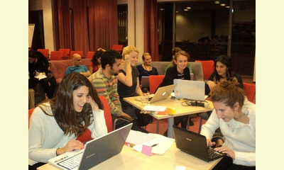 Part of the group at work, from left to right: Elena Georgalla (Greece); Nik Paddison (UK); Serkan Kurucu (Turkey); Maj Grasten (Denmark); Iulia Socea (Romania); Dominika Kasprzak (Poland); Satenik Baghdasaryan (Armenia); Fanny Tittel-Mosser (France). Photo by Albina Hajimahammadova.