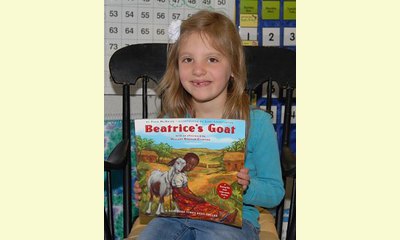 The book tells the story of a 9-year-old African girl who couldn’t afford to attend school until her family received a goat from Heifer International. Money earned from selling goat’s milk enabled young Beatrice to buy books and start school. The book ends there, but the success story continued as Beatrice Biira eventually won a scholarship to Connecticut College in New London and graduated in 2008.