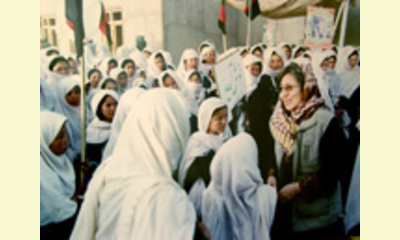 Samar at a girl's school run by Shuhada Organization, Daikundi province, 2003