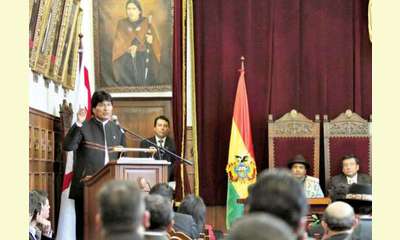 El Jefe de Estado participó en Sucre en la inauguración del año judicial y en su discurso abogó para que el cambio, que se produjo con la elección de magistrados de poncho y abarcas, en una historia de juristas privilegiados, se traduzca en la eliminación de la injusticia y la corrupción.