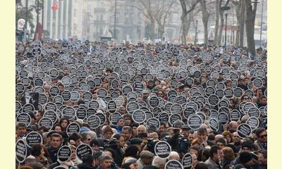 Janvier 2012 - Manifestation à Istanbul (Turquie) à l'occasion du cinquième anniversaire de l'assassinat de Hrant Dink.© REUTERS/Osman Orsal