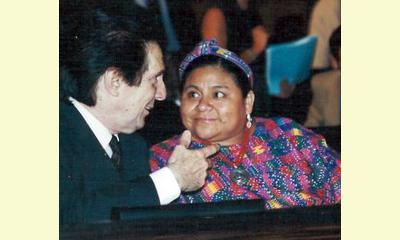 Rigoberta Menchu was awarded the Nobel Peace Prize in 1992, “in recognition of her work for social justice and ethno-cultural reconciliation based on respect for the rights of indigenous peoples.” She continued telling me about her family’s destruction: “In 1983, my brother Victor Menchu was also shot dead. His wife had her throat slit, and he was fleeing with his three children. Victor was jailed in the little town, but his three children were kept in a military bunker. My two nieces died of hunger in this military base, and my brother Victor was shot. We still have not found his remains.”