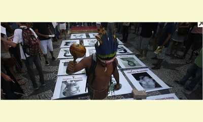 Human Rights Watch said today.  A native Indian walks over pictures of people disappeared during the military dictatorship in Brazil at a protest against the 49 year anniversary of the 1964 military coup, in Rio de Janeiro on April 1, 2013. © 2014 Reuters
