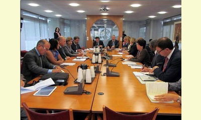 announced in Geneva.  Dr. Roberto Morales Ojeda (third from left), Cuba's Health Minister, and the delegation that accompanied him during the conversations with Dr. Margaret Chan, Director-General of the World Health Organization. Foto: Carmen Esquivel