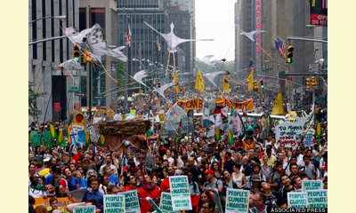 action at the United Nations climate summit.  Demonstrators make their way down Sixth Avenue in New York during the People's Climate March on Sunday.