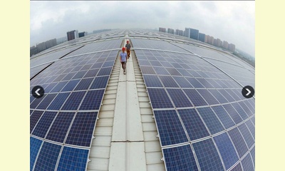 scientists said.  Photovoltaic solar panels on the roof of the Chint Group office building in Hangzhou, Zhejiang Province, China