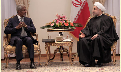 Chair of The Elders Kofi Annan with Iran's President Rouhani, 28 January 2014