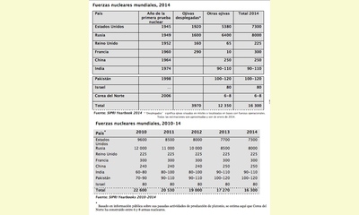 número total de ojivas nucleares en el mundo (tabla 2). La