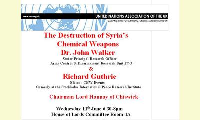 US Strategy for Ridding Syria of Chemical Arms Parliaments Demand Zero Tolerance on Chemical Weapons Statement by the OPCW Director-General on the 2013 Nobel Prize for Peace Good news: Destruction of Syria's Chemical Weapons