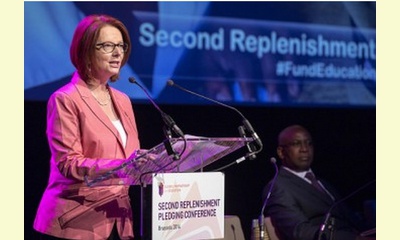 quality education for millions of children.  Julia Gillard, Board Chair of the Global Partnership for Education, addresses a plenary session in Brussels, Belgium