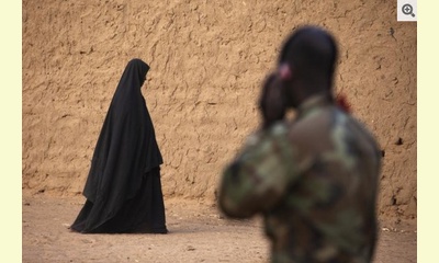 sexual violence at a global summit in London this week.  A woman walks past a soldier in the village of Kadji, Mali, March 1, 2013. REUTERS/Joe Penney