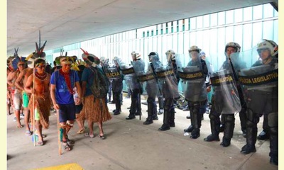 seizing control of the future of their lands.  Dozens of Indians entered the Congress building to make their voices heard. © Agência Brasil