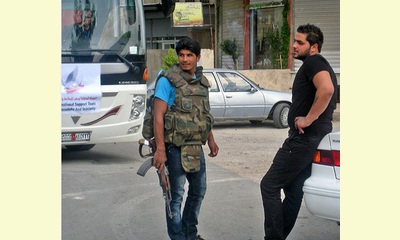 Syria affected by the crisis.  Syrian youth standing in the street. Photo by Mel Duncan