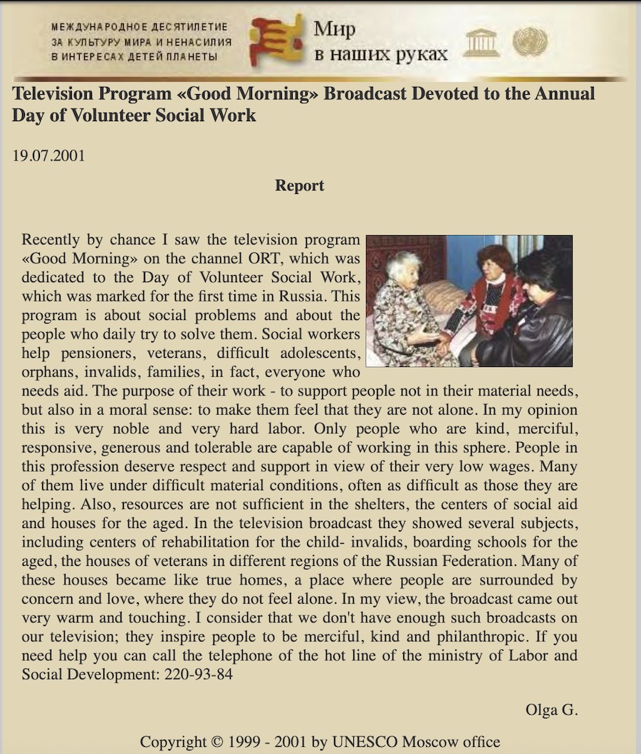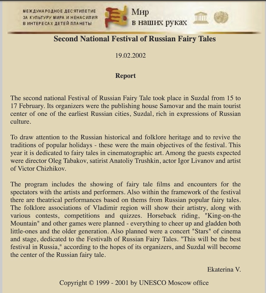 ![]() Homepage of Japanese CPNN website Musical: Go, Japanese Constitution - - - - - - Homepage of Russian CPNN website Television program "Good Morning" Second National Festival of Russian Fairy Tales The Era of Science Fiction - VI |